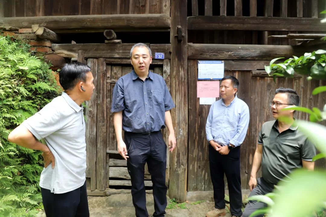 ▲周峰(左二)一行在白云鄉(xiāng)大灣村督導檢查