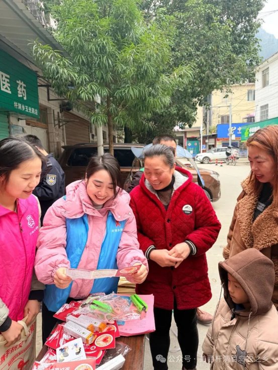 活動由鄉便民服務中心牽頭,聯合司法所、派出所、新時代文明實踐所、婦聯、禁毒辦及鄉中心小學等多部門共同參與,實現宣傳資源整合與聯動發力。通過“集中宣傳+精準教育”“線下活動+常態傳播”相結合的模式,活動深入街道、校園兩大陣地,覆蓋不同群體,提升宣傳實效。