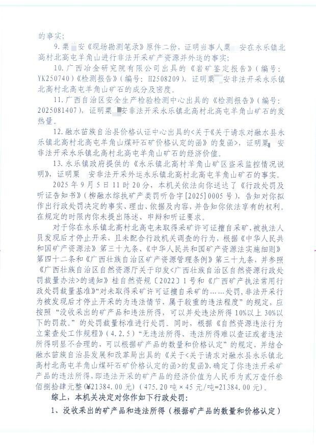 柳融水綜執(zhí)礦產(chǎn)類罰決字[2025]0005號