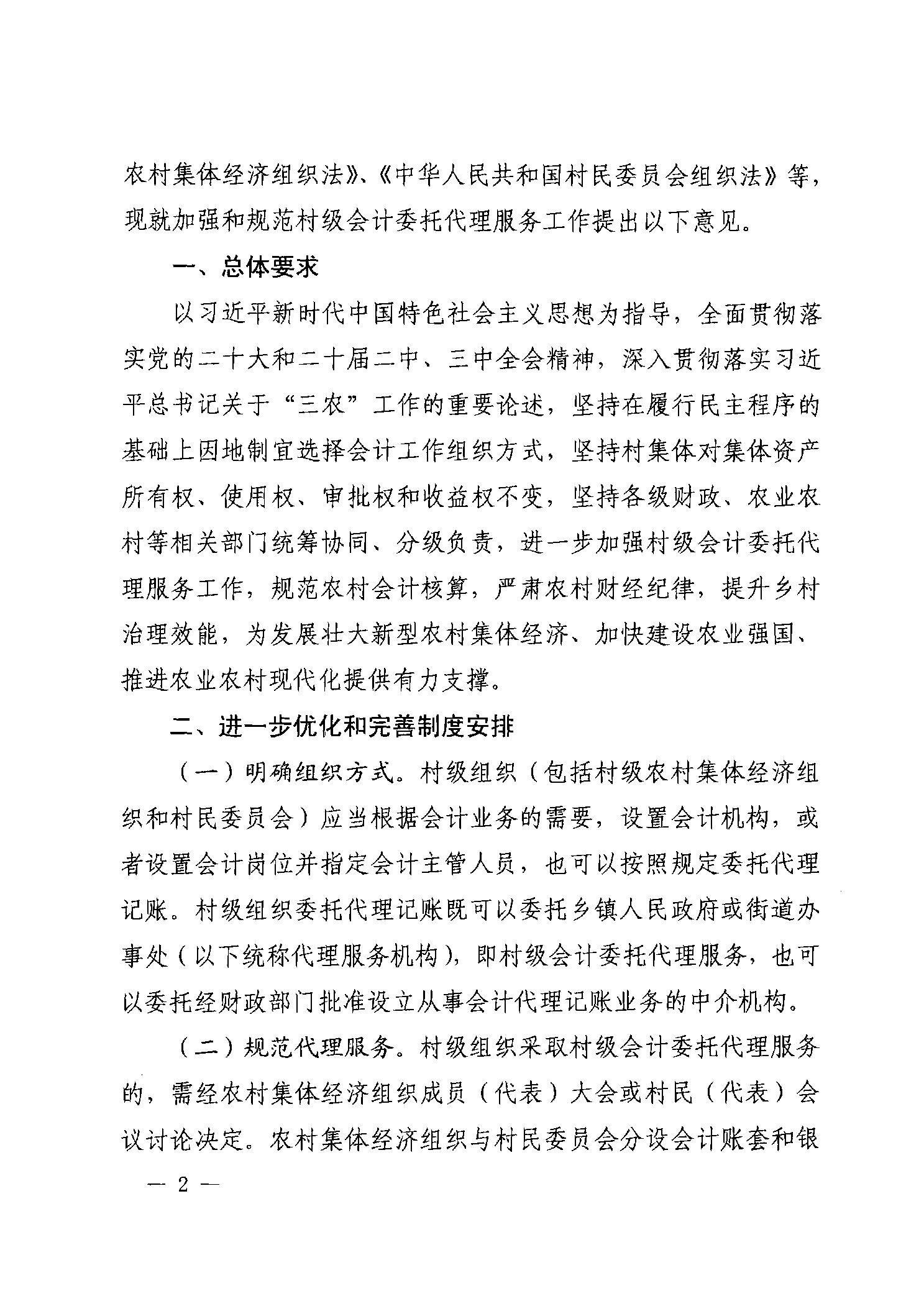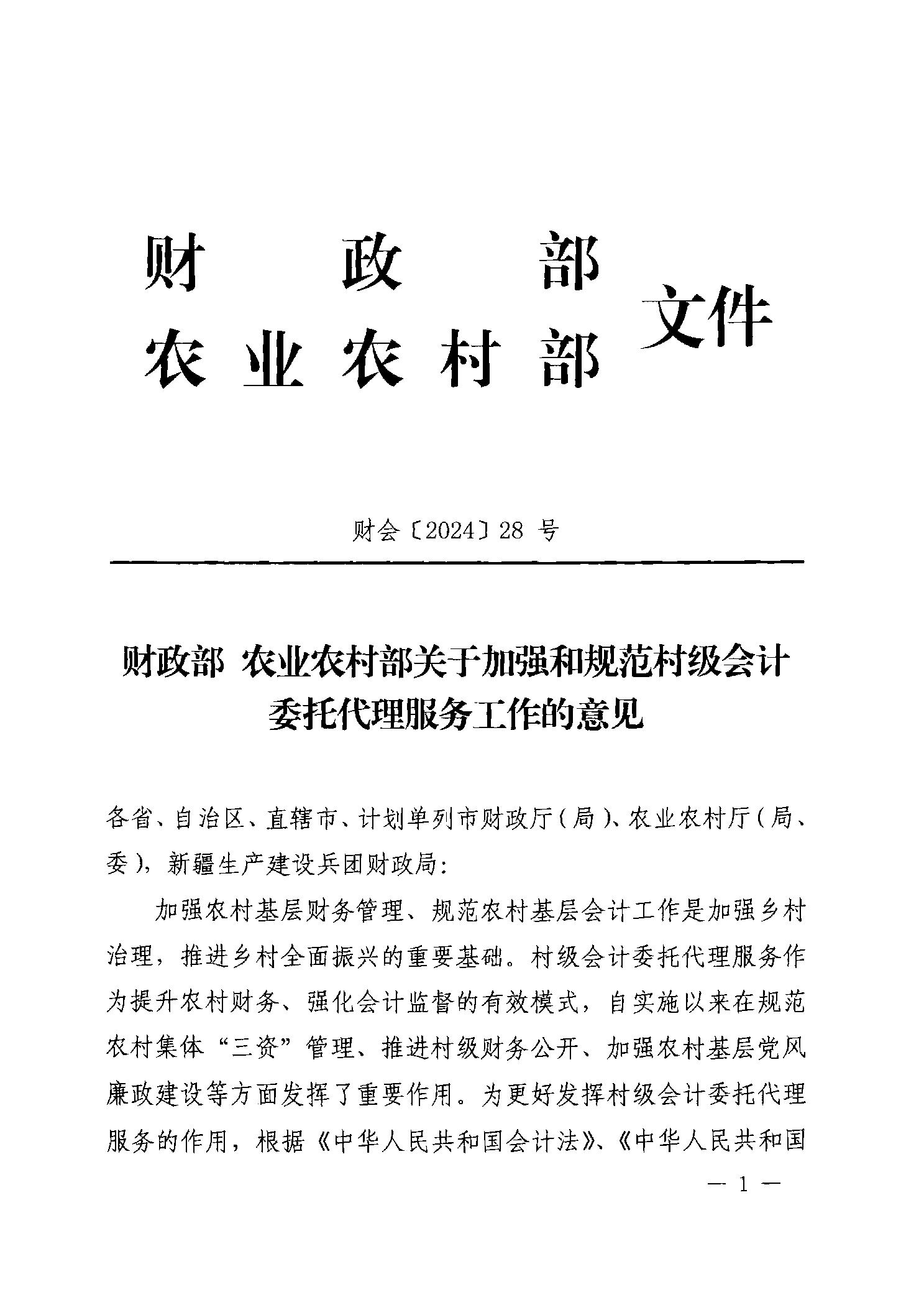 財(cái)會(huì)〔2024〕28號(hào)關(guān)于加強(qiáng)和規(guī)范村級(jí)會(huì)計(jì)委托代理服務(wù)工作的意見