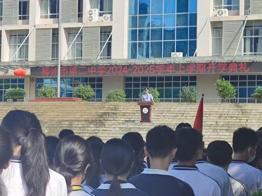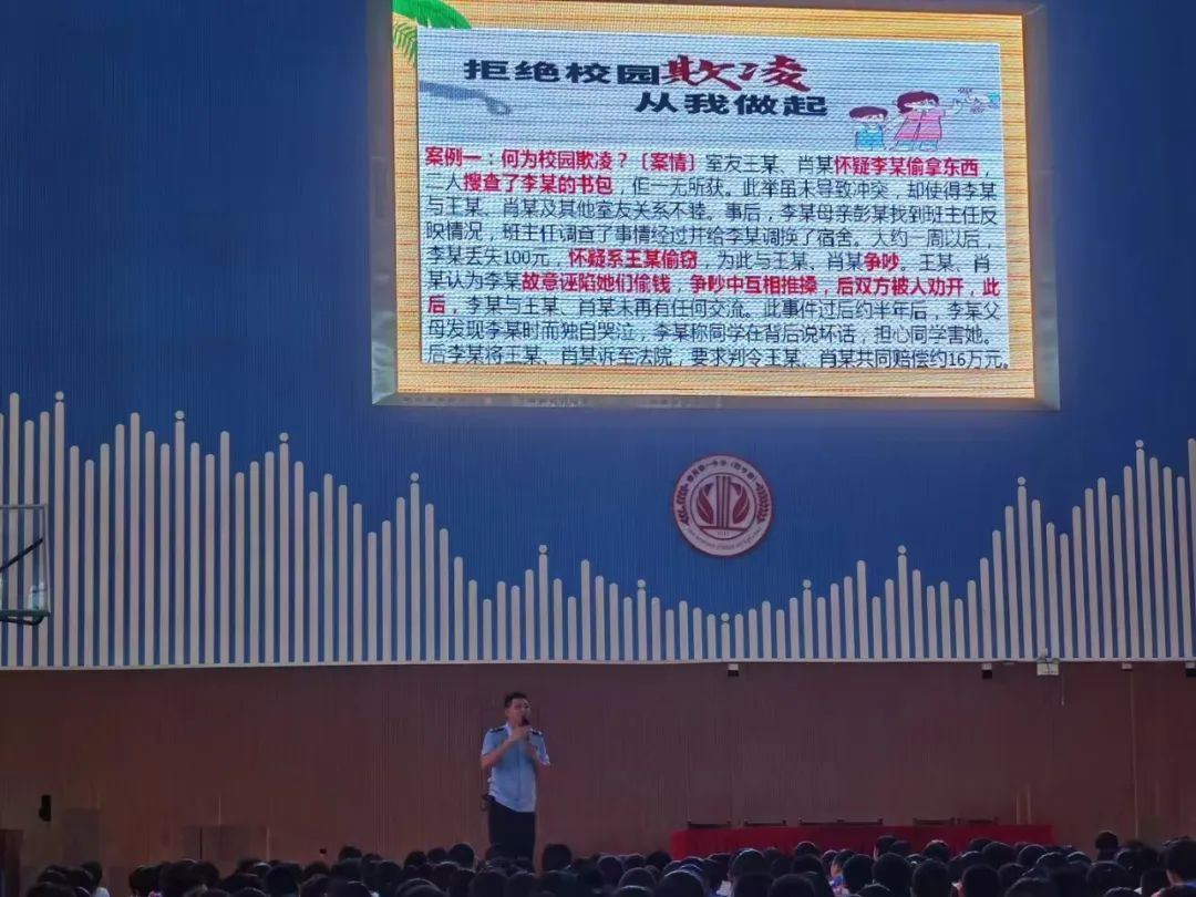 ? ? ?“哪位同學知道校園欺凌霸凌嗎?遇到校園欺凌霸凌該怎么辦?”在柳州市第二中學,官塘派出所的副所長覃云提醒孩子們要時刻注意自身安全,并引導孩子們養成健康向上的品格,建立融洽的同學關系,更要勇敢的對校園欺凌說“不”。