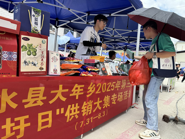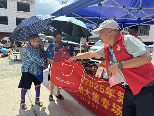 “謝謝你們的碳烤辣椒!回家一定好好品嘗。”趕圩日的供銷大集上,一位苗族阿姨接過供銷社干部贈送的特色農產品,臉上的笑容比三伏天里的高照的艷陽還要燦爛。2025年7月31日,融水苗族自治縣供銷社黨員干部走進大年鄉第三屆“趕圩日”,開展供銷大集專場活動。