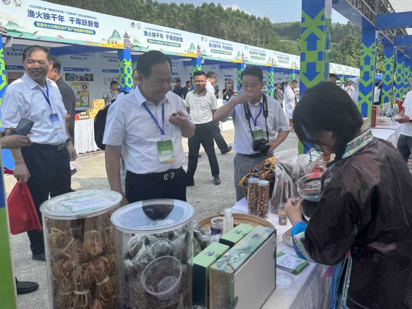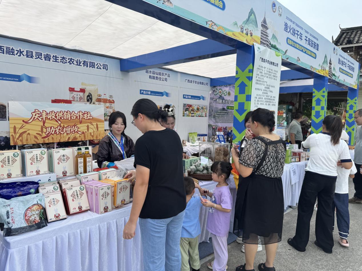 ????活動現場設置20余個融水展位,參展企業帶來的各類特色農產品琳瑯滿目:紫黑香糯米、金邊禾花鯉、手工紅薯粉、大苗山紅茶等依次陳列,充分展現融水農業的多元業態與豐收盛景。
