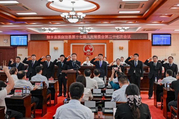 2025年5月30日,融水苗族自治縣第十七屆人大常委會第二十七次會議在人大四樓常委會會議室召開,自治縣人大常委會主任梁海靜主持會議,自治縣人大常委會副主任秦雪梅、管翠留、俞凱彬、莫先偉及委員共28人出席會議,自治縣人民政府副縣長沙昱彤、自治縣監察委員會副主任吳世華、自治縣人民法院副院長王鐵強、自治縣人民檢察院副檢察長栗鵬飛等列席會議。