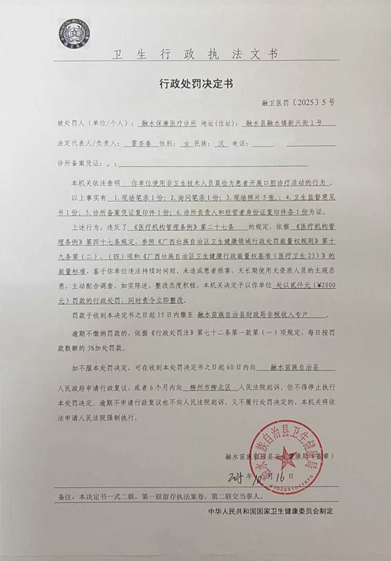 融衛(wèi)醫(yī)罰〔2025〕5號(hào)行政處罰決定書