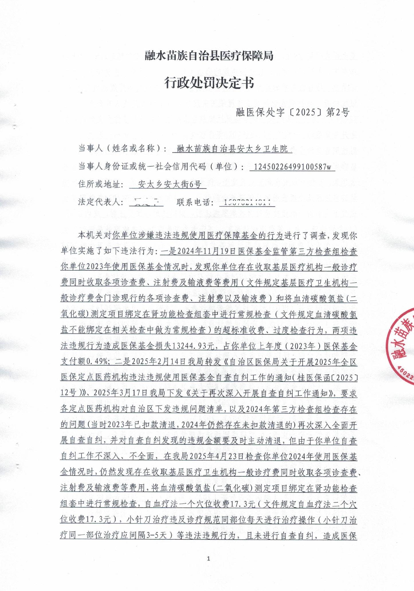 行政處罰決定書(shū)(融醫(yī)保處字【2025】第2號(hào)
