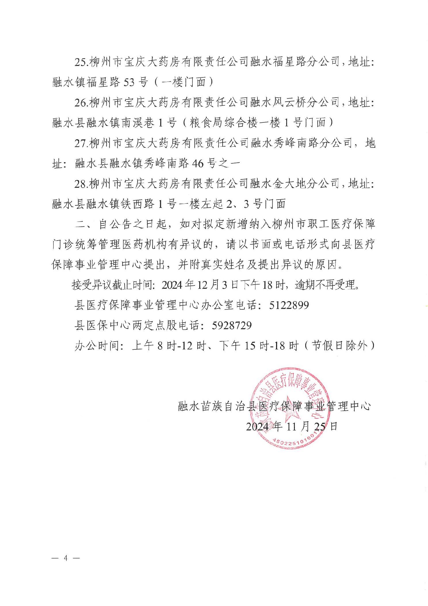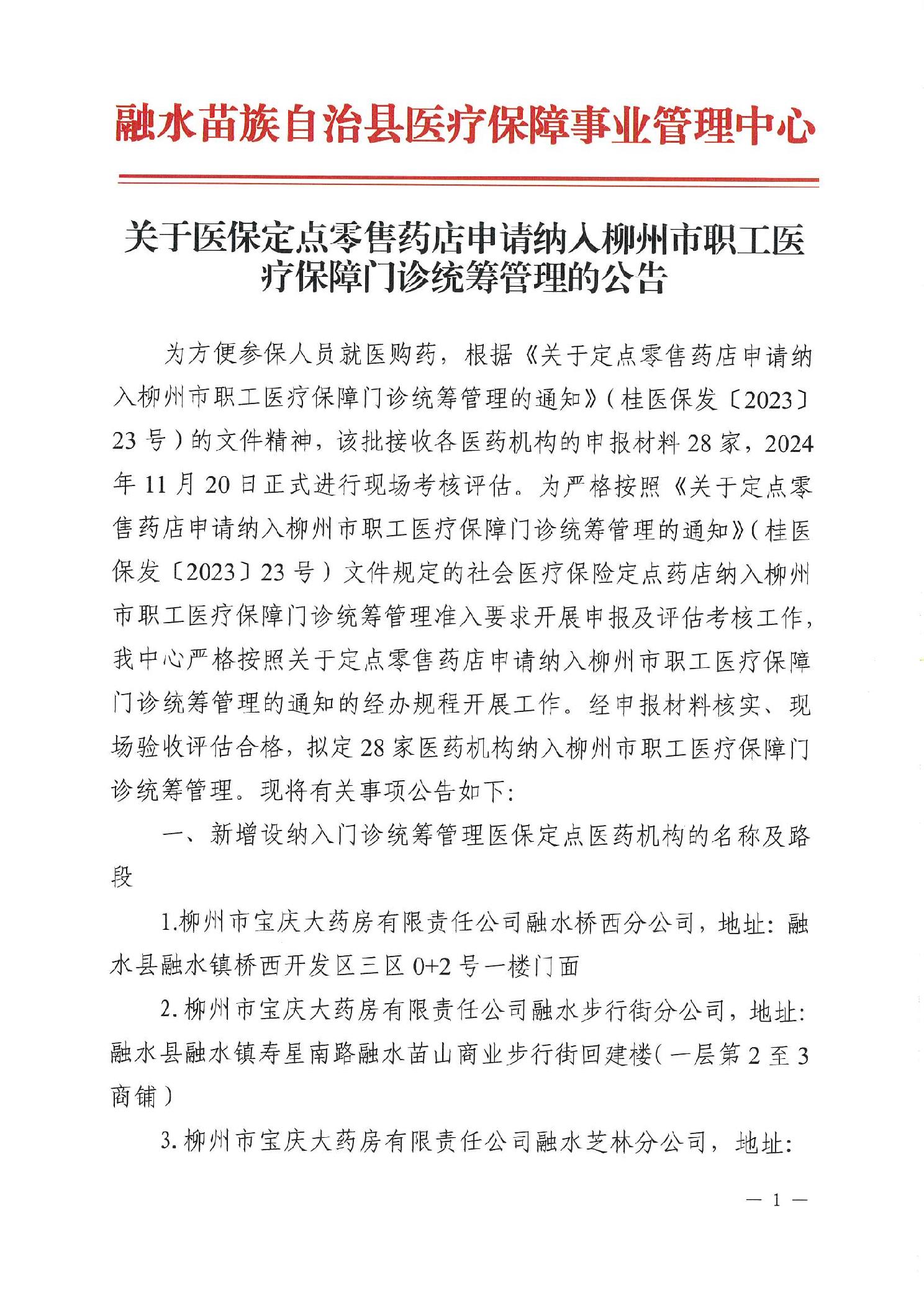 關(guān)于增加納入柳州市職工醫(yī)療保障門(mén)診統(tǒng)籌管理醫(yī)藥機(jī)構(gòu)的公告
