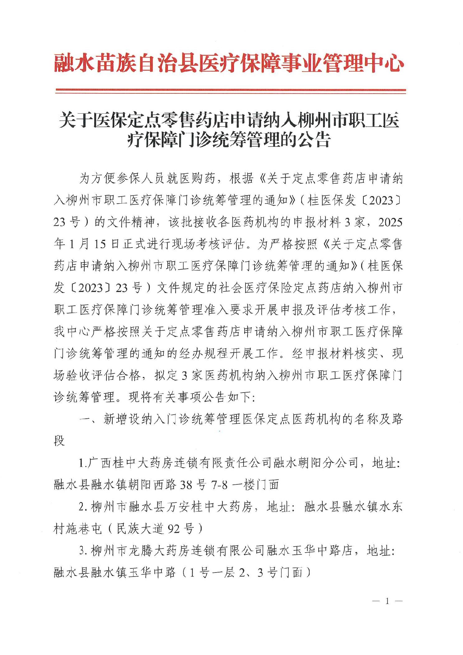 關(guān)于增加納入柳州市職工醫(yī)療保障門診統(tǒng)籌管理醫(yī)藥機(jī)構(gòu)的公告