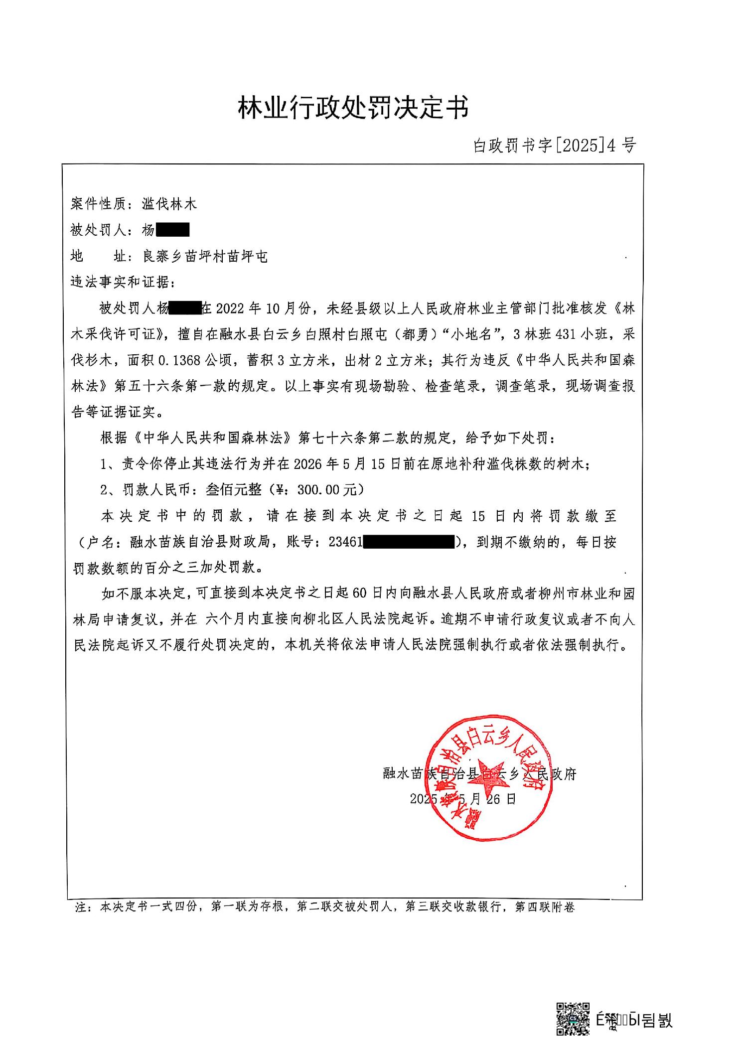 林業(yè)行政處罰決定書 白政罰書字[2025]4號