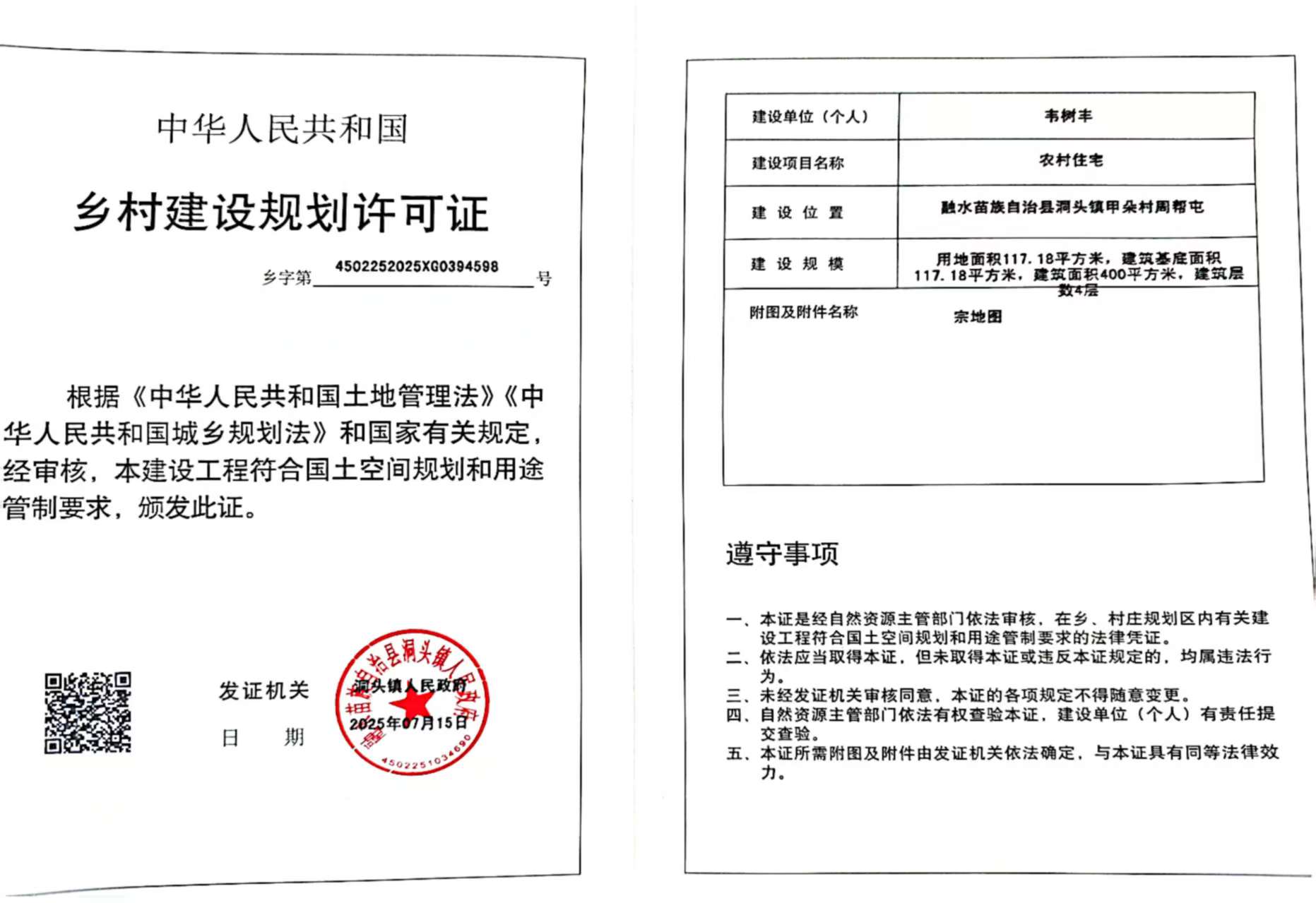 鄉(xiāng)村建設(shè)規(guī)劃許可證(鄉(xiāng)字第:4502252025XG0394598)公示