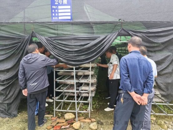 ▲考察聯(lián)合村榮洞村食用菌培育生產(chǎn)基地