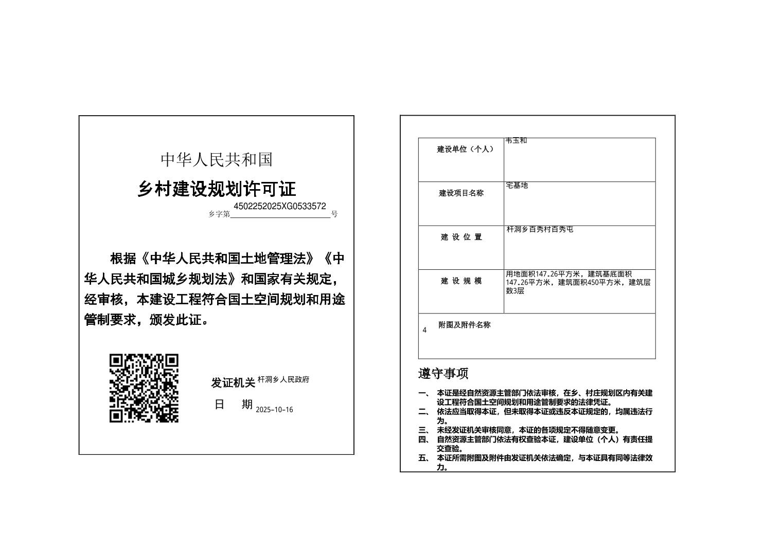 鄉(xiāng)村建設(shè)規(guī)劃許可證:鄉(xiāng)字第4502252025XG0533572號公示