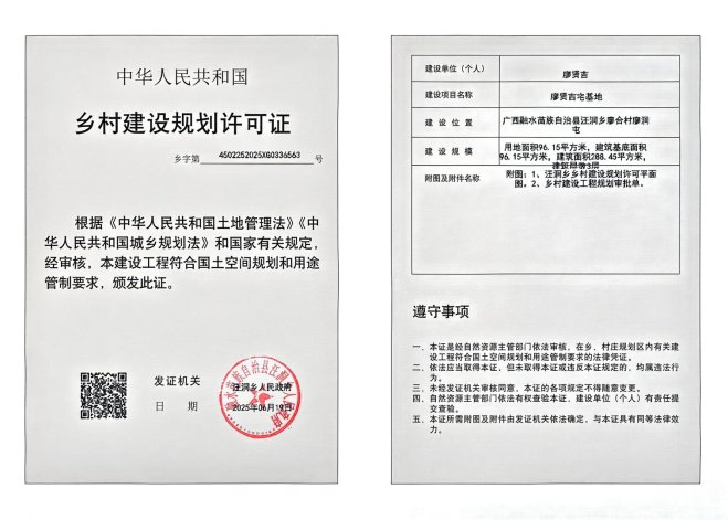 鄉(xiāng)村建設(shè)規(guī)劃許可證(鄉(xiāng)字第:4502252025XG0336563號(hào))公示